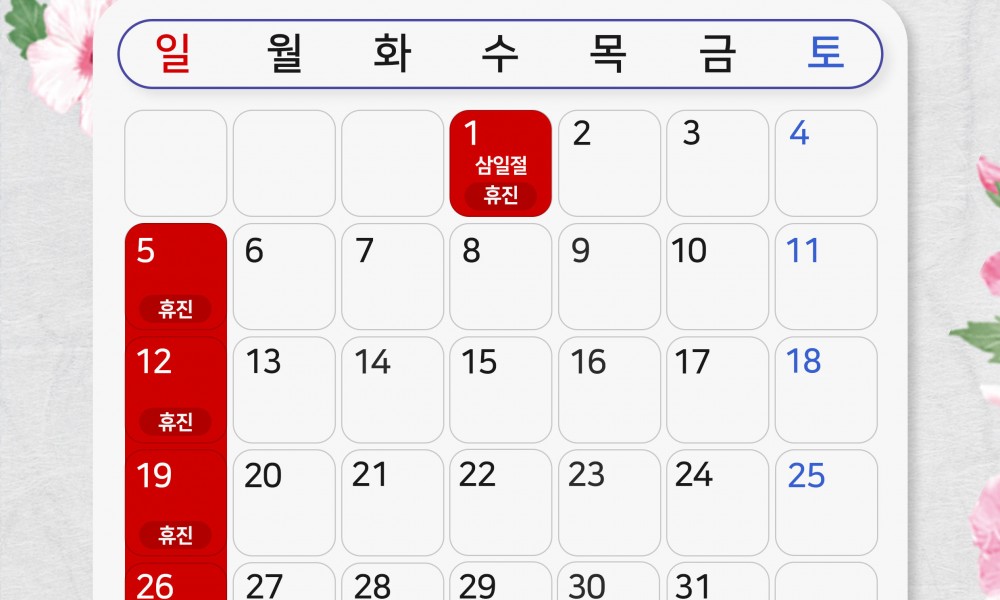 진료일정을 참고하시어 예약 및 내원에 불편함 없으시길 바랍니다.
