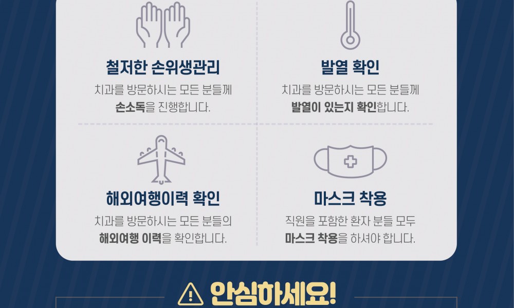 서울더퍼스트치과는 신종 코로나 바이러스의 철저한 감염예방을 위해서
