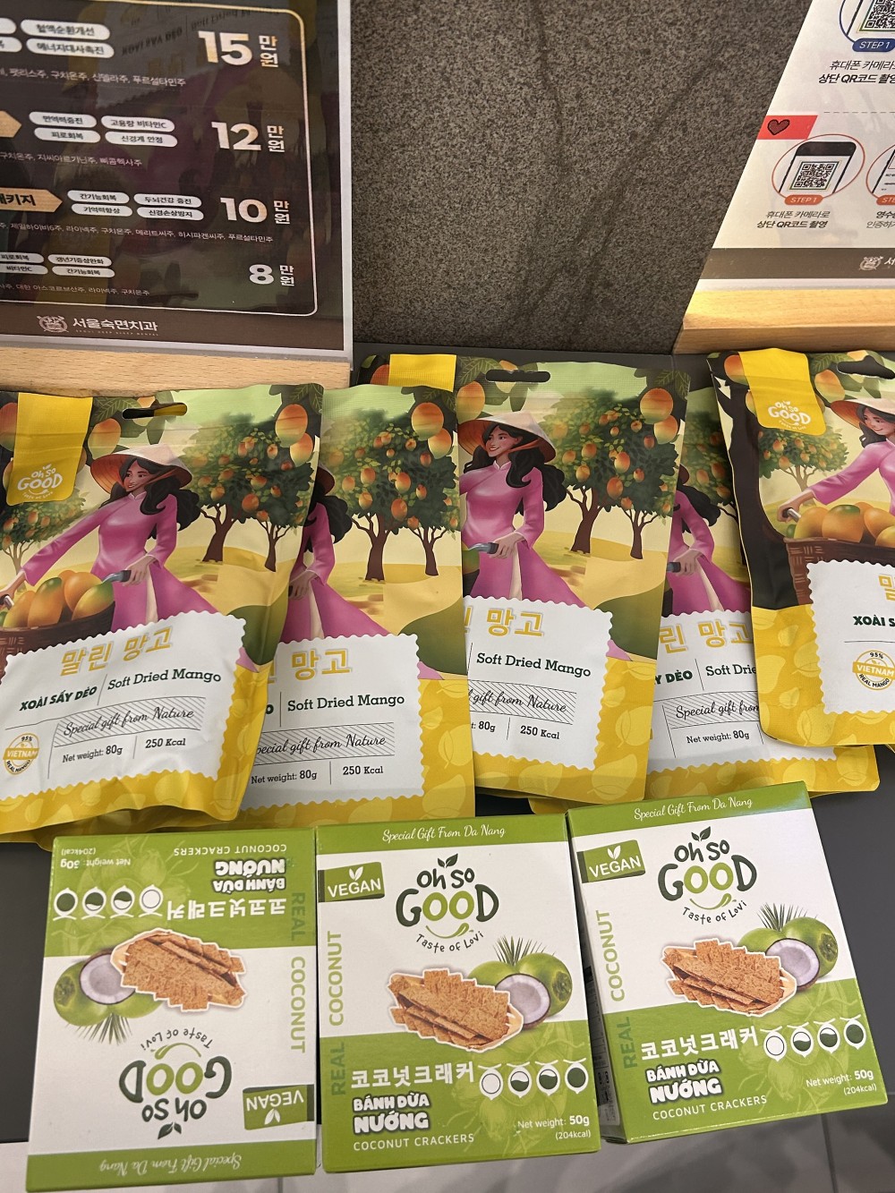 저희 직원들을 위해 말린 망고와 코코넛 크래커 간식을 정성스럽게 선물해주셨어요♥