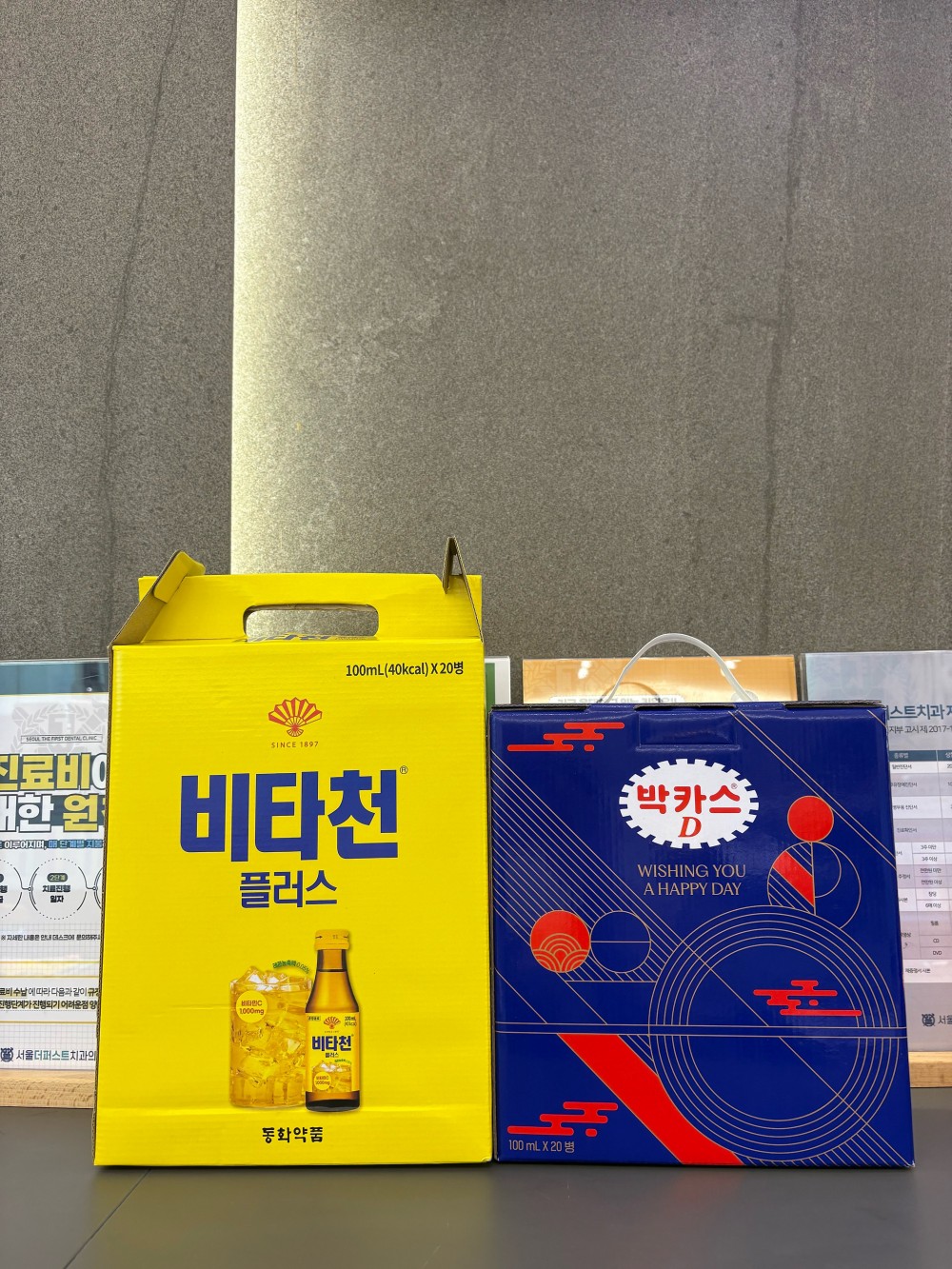 오늘은 저희 치과에서 교정치료를 받으신 환자분께서 비타천과 박카스를 선물해 주셨어요!